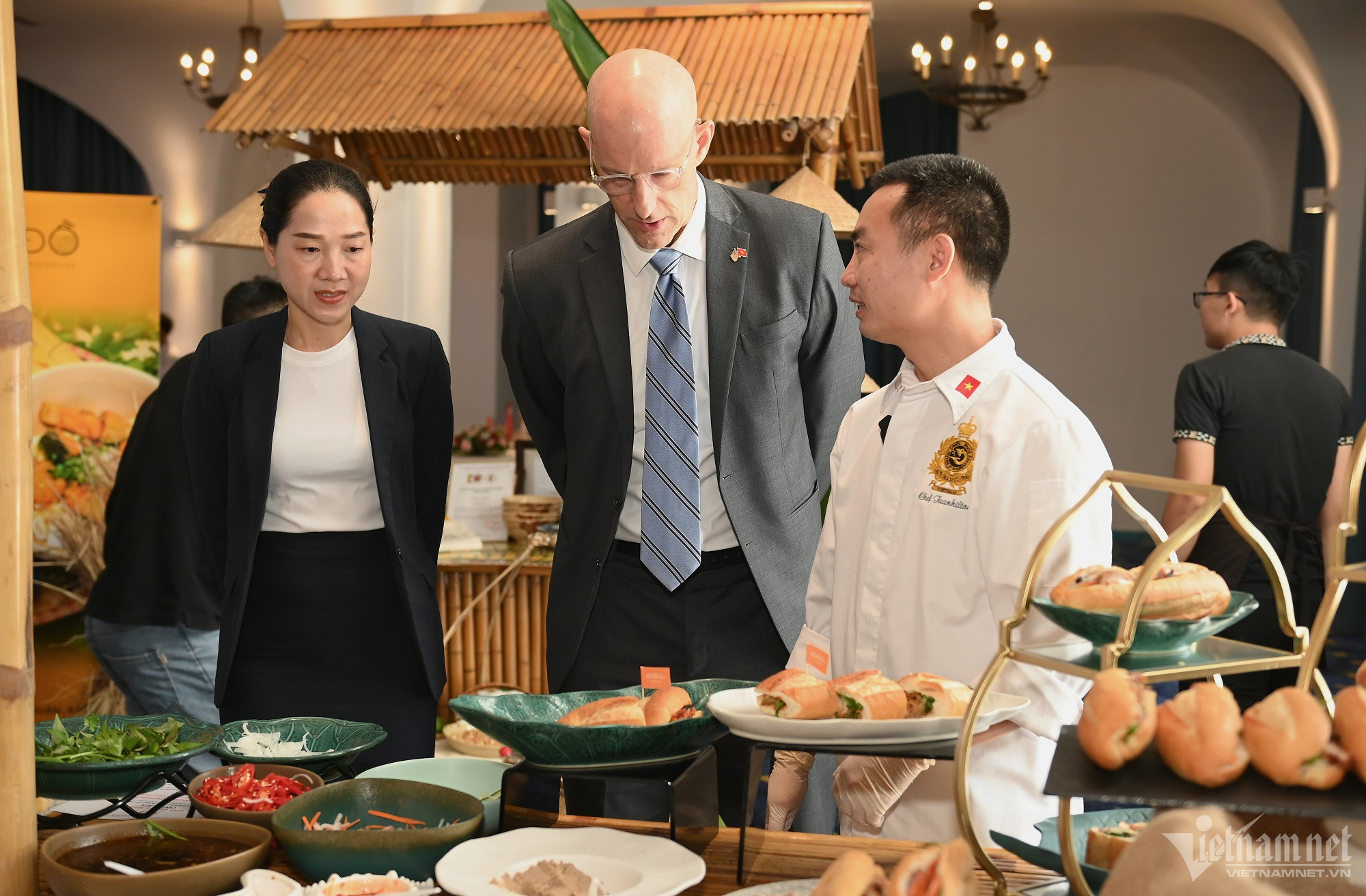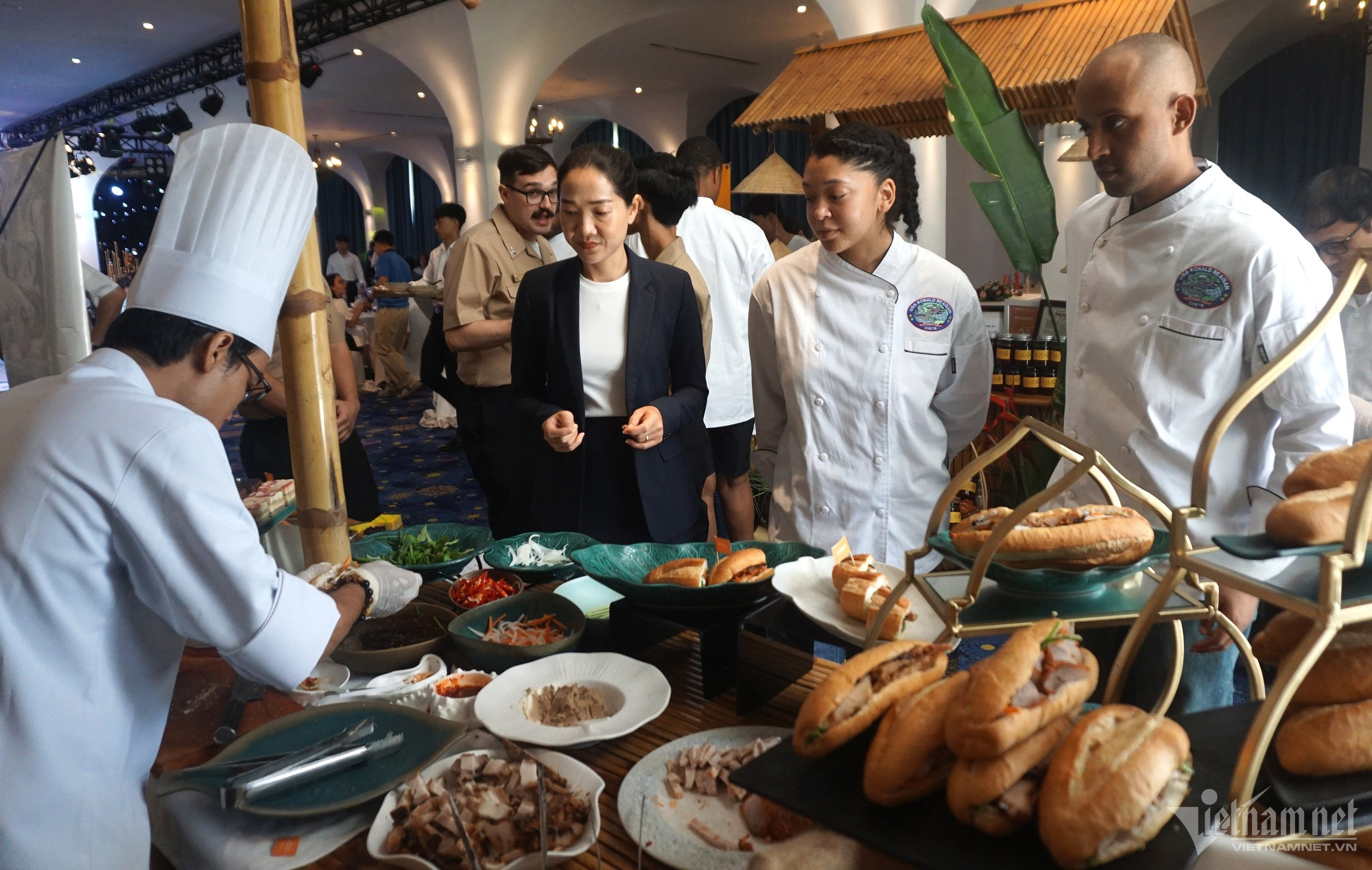 Hình ảnh thủy thủ tàu sân bay Mỹ học nấu ăn, thưởng thức bánh mì Việt Nam
