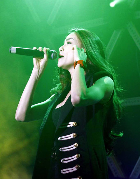 Hà Hồ - Thủy Tiên, hai tên tuổi ca sĩ nữ thuộc hàng nóng nhất hiện nay trong làng nhạc đã "đụng độ" nhau trong đêm "Shock the world" vừa diễn ra tại TP.HCM. Vẫn trung thành với dòng trang phục bó sát, hở ngực và khoe mọi đường cong, hai giọng ca không chỉ hát hết mình, mà còn ra sức thể hiện độ quyến rũ về sắc vóc.