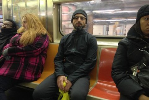 | Sergey Brin hết sức giản dị khi bắt gặp đang đi tàu điện ngầm ở New York. |