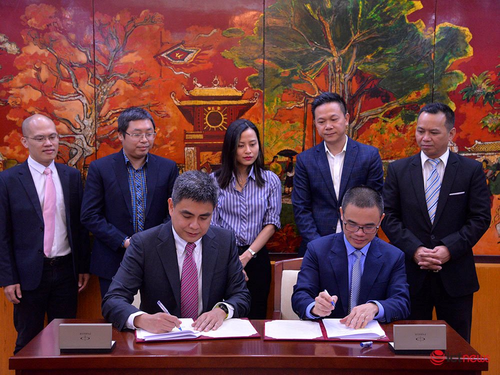 Đại diện lãnh đạo TIBCO Sotfware và Đại học Hà Nội ký kết thỏa thuận hợp tác. |