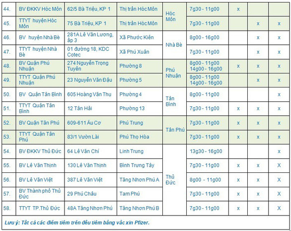 Trong 4 ngày nghỉ lễ, có 58 điểm tiêm ở các cơ sở y tế hoạt động, các điểm tiêm trường học tạm nghỉ. Toàn bộ vắc xin sử dụng do Pfizer sản xuất.