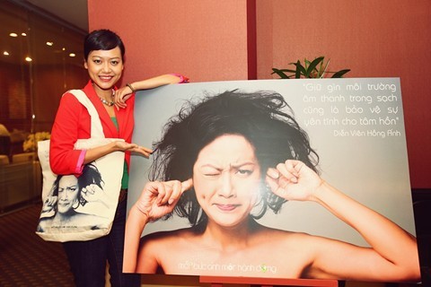 Trong khi đó, diễn viên Hồng Ánh lại chọn đề tài ô nhiễm âm thanh. "Giữ gìn môi trường âm thanh trong sạch cũng là bảo vệ sự yên tĩnh cho tâm hồn" là thông điệp mà chị muốn gửi gắm.