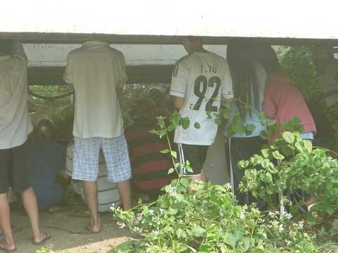 | Hàng trăm người dân hiếu kì (ảnh do bạn đọc cung cấp) |