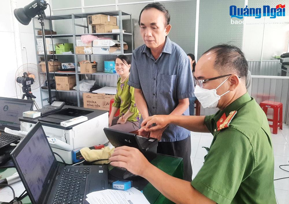 | Công an TP.Quảng Ngãi thực hiện thủ tục cấp tài khoản định danh điện tử cho người dân. |