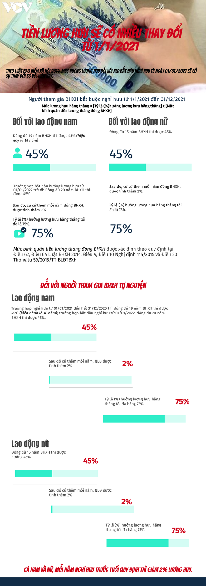 Theo qui định của Luật Bảo hiểm xã hội, mức hưởng lương hưu đối với người lao động bắt đầu nghỉ hưu từ ngày 01/01/2021 sẽ có sự thay đổi.