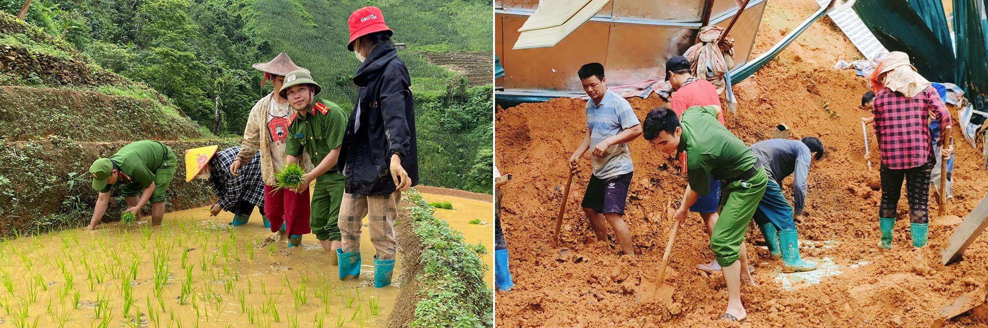 "Màu xanh quân phục của chúng tôi có mặt giúp người dân từ những công việc giản dị như cấy lúa, gieo trồng trên đồi hay những lần giúp dựng lại nhà dân bị thiên tai phá hủy, tải lương thực cứu trợ cho bà con bản nghèo bị cô lập...", Thượng úy Lý Mạnh Cường chia sẻ.