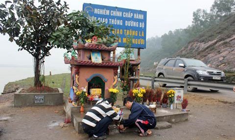 Đúng vị trí chiếc xe được trục vớt và là nơi khâm liệm thi thể các nạn nhân, một ngôi miếu nhỏ đã được dựng lên bởi bàn tay của một người đàn ông ngoại tứ tuần, từng là “giang hồ có máu mặt”. Anh là Trần Văn Thành (Xuân Hồng, Nghi Xuân, Hà Tĩnh), một ông chủ quán cơm cách ngôi miếu chừng 100m.