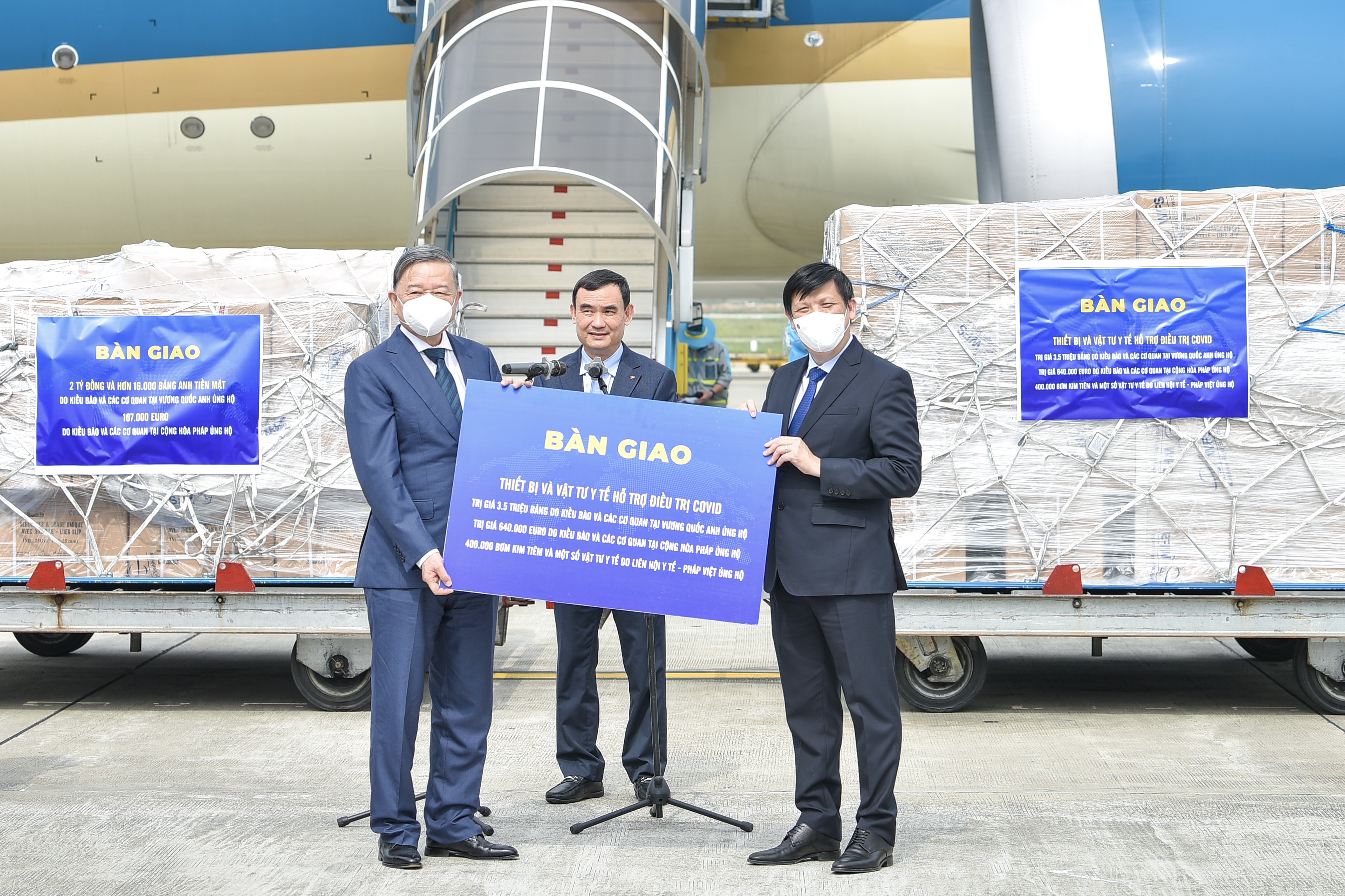 Đại diện đoàn công tác, Ủy viên Bộ Chính trị, Bộ trưởng Bộ Công an Tô Lâm đã trao tượng trưng cho Bộ trưởng Bộ Y tế Nguyễn Thanh Long các vật tư, trang thiết bị y tế mà kiều bào ta ủng hộ. Đồng thời, trao tượng trưng cho Phó Chủ tịch Ủy ban Trung ương Mặt trận Tổ quốc Việt Nam Ngô Sách Thực số tiền kiều bào, các cơ quan ủng hộ công tác phòng chống đại dịch Covid-19.