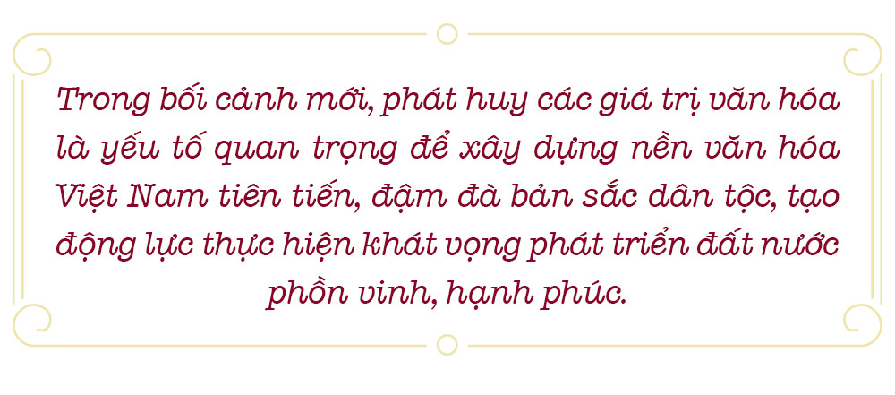 Cùng với sự biến đổi của quá trình phát triển kinh tế - xã hội sau hơn 35 năm đổi mới, các giá trị văn hóa Việt Nam cũng có những biến đổi lớn, song các giá trị truyền thống, cốt lõi, như yêu nước, nhân ái, nghĩa tình, đoàn kết... đã được định hình trong lịch sử và thể hiện bản sắc văn hóa dân tộc tiếp tục được gìn giữ, phát huy. Văn hóa tiếp tục phát huy vai trò quan trọng, “là nền tảng tinh thần xã hội”, là “mục tiêu và động lực” trong xây dựng và phát triển đất nước, góp phần tạo nên sức mạnh dân tộc trong bối cảnh mới.