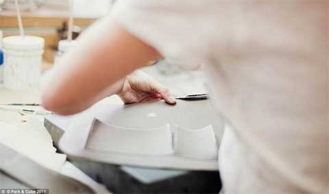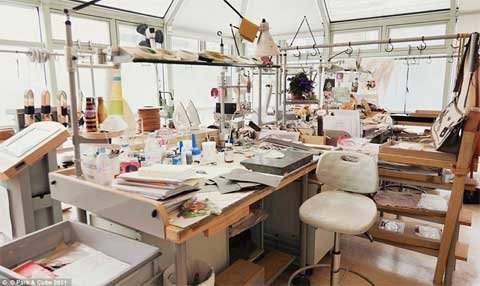 Tọa lạc ở Pantin, ngoại ô Paris, xưởng sản xuất nhỏ bé rải rác đầy các mẩu da, chỉ bông và các bản thiết kế giấy.
