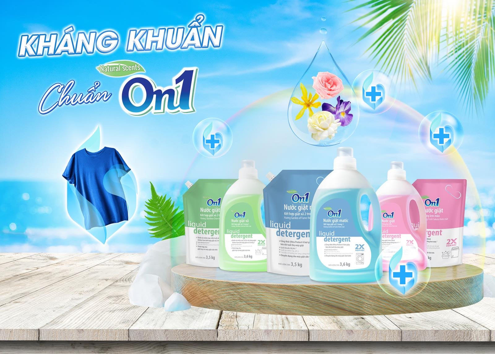 Dù “sinh sau đẻ muộn” nhưng On1 hiện là thương hiệu nước giặt đang được nhiều người nội trợ yêu thích. Điểm mạnh của sản phẩm là khả năng diệt khuẩn, có thể loại bỏ 99,9% một số loại vi khuẩn bám vào quần áo (theo kết quả kiểm định của nhà sản xuất). Bên cạnh đó, nước giặt On1 còn chứa thành phần tinh dầu thiên nhiên lành tính như: cỏ hương bài, bưởi, cam ngọt… mang hương thơm dễ chịu.