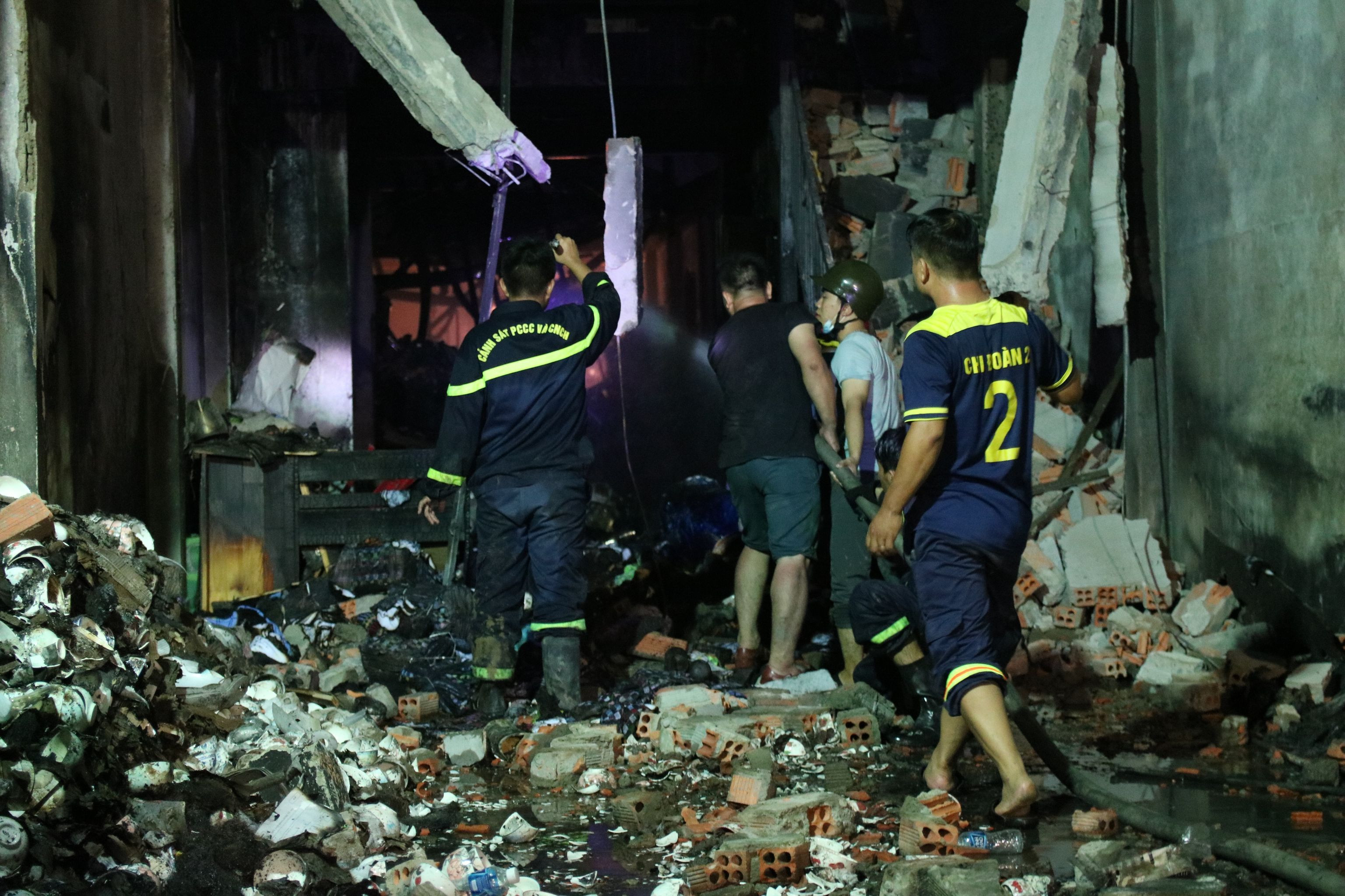 Ngoài ra, sau hỏa hoạn tường của hai nhà kế bên khá yếu. Đối với căn nhà xảy ra cháy, có chiều dài hàng chục mét, chiều rộng chừng 4-5m2, bên trong có nhiều đồ đạc, vật dụng dễ cháy, vì thế, lực lượng chức năng trong quá trình tìm kiếm phải làm cẩn trọng, tránh gặp nguy hiểm.