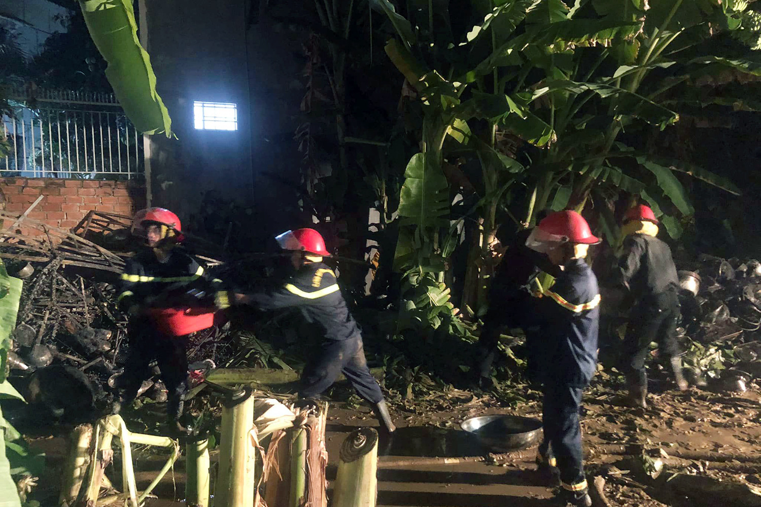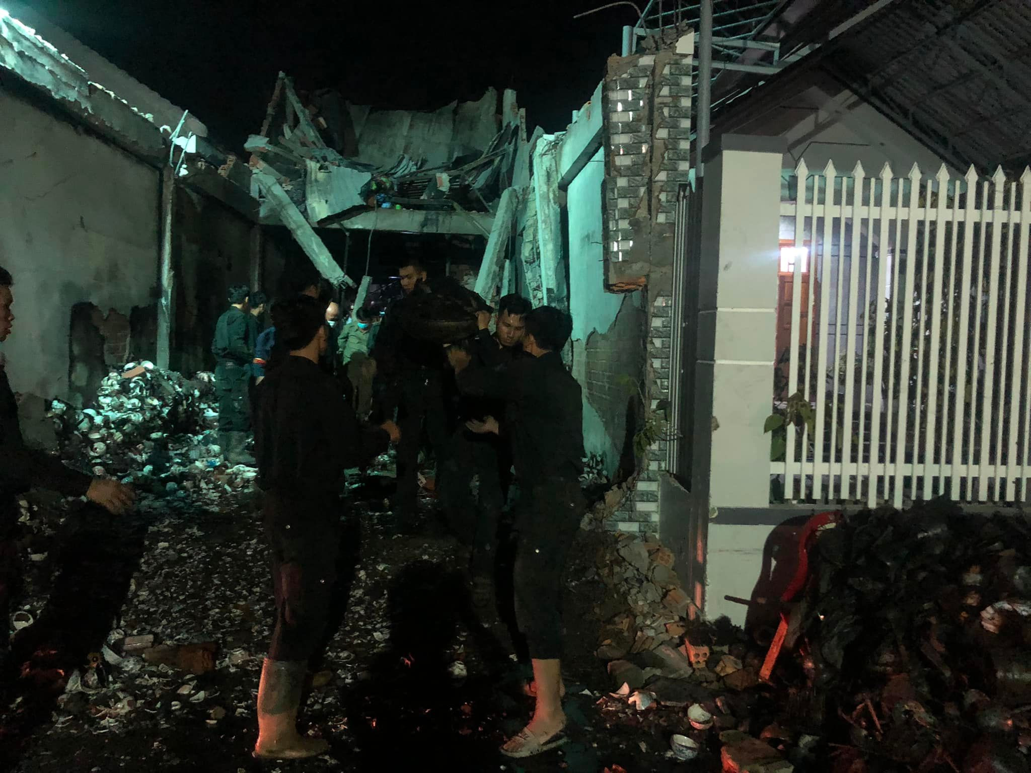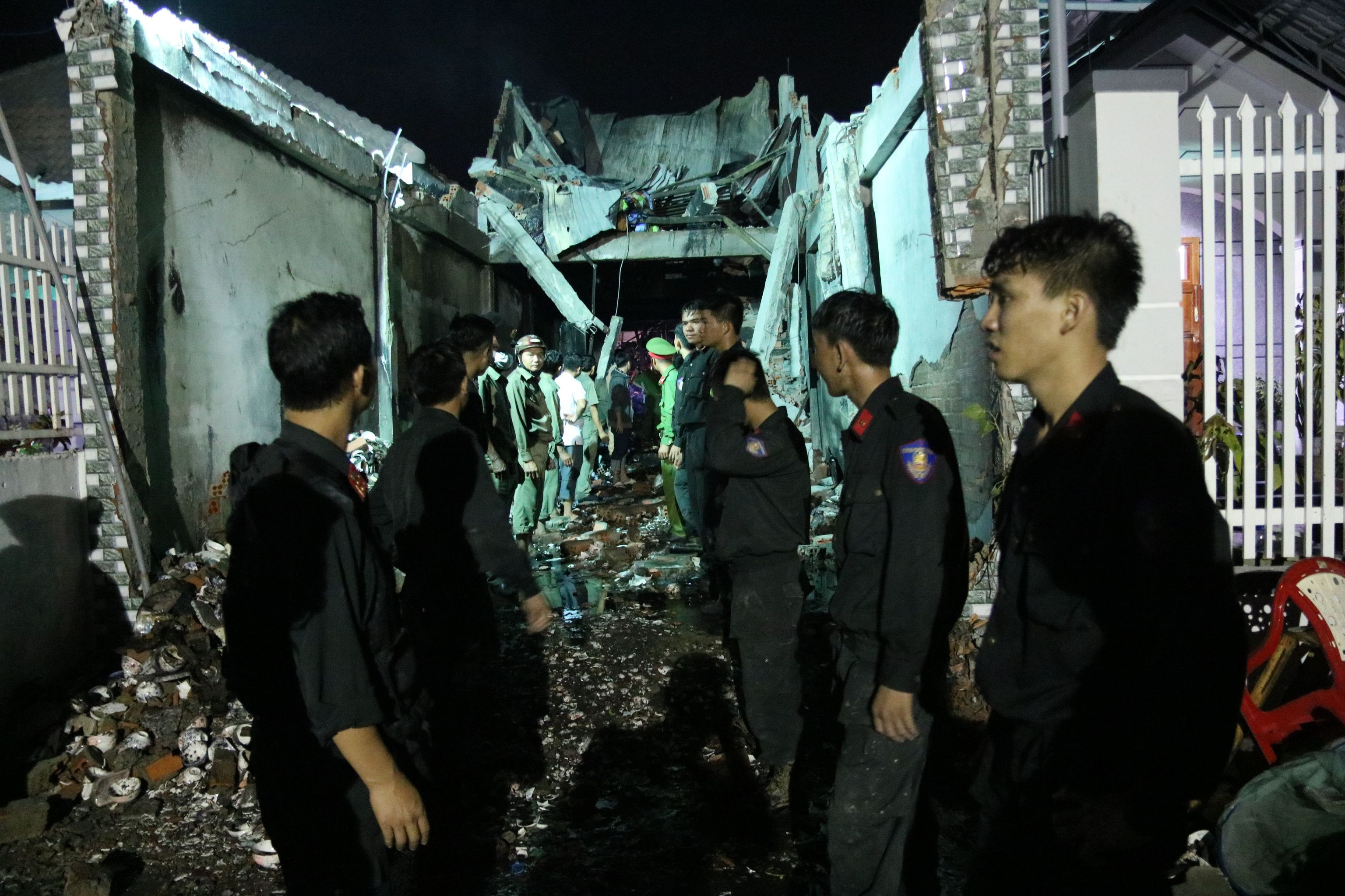 Xung quanh hiện trường không khí nặng nề. Nhiều người vẫn tập trung theo dõi tìm kiếm nạn nhân. Cảnh sát tích cực dọn dẹp, tất bật đưa nhiều đồ đạc bị cháy ở bên trong căn nhà ra ngoài, tiếp tục đào bới tìm người. Chó nghiệp vụ cũng được đưa tới, sẵn sàng vào hiện trường làm nhiệm vụ tìm các nạn nhân mất tích.
