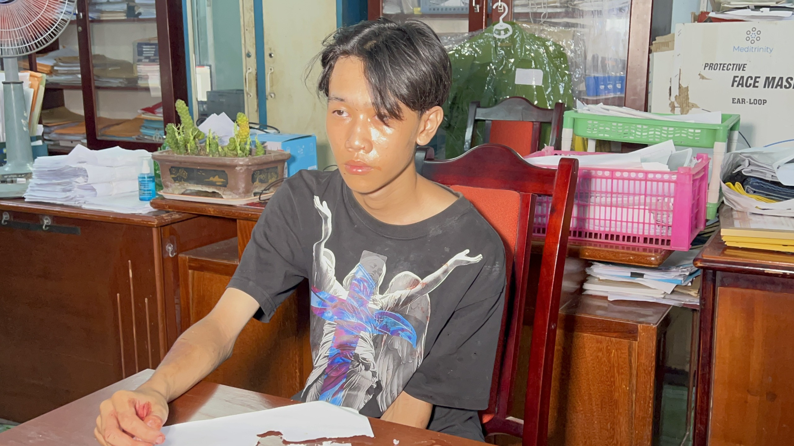 Huỳnh Trí Thành (trái) cùng Huỳnh Tiến Đạt tại cơ quan công an. Ảnh: Tiến Tầm