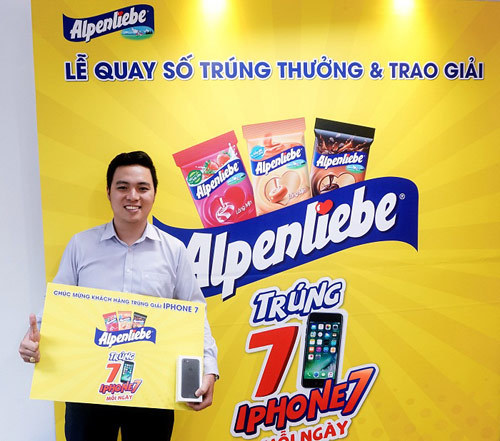 Đó là câu chuyện của anh chàng điển trai Liêu Hoàng Vũ (Bình Thạnh, TP.HCM). Vợ chồng Vũ tình cờ biết đến CTKM “Trúng 7 iPhone 7” của Alpenliebe trong một lần đi siêu thị. Cả hai quyết định thử vận may vì thấy cách thức tham gia quá đơn giản, lại có đến 434 giải thưởng. Không những thế, Vũ cho biết mình dùng iPhone 5 đã lâu, muốn được nâng cấp lên một chiếc điện thoại cao cấp hơn nhưng chưa có dịp. Và vận may đã gọi tên Liêu Hoàng Vũ chỉ với 10 thỏi kẹo Alpenliebe.