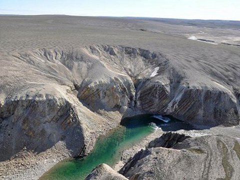 Các nhà khoa học Trường ĐH Saskatchewan (Canada) đã nhìn thấy miệng hố trong một chuyến bay khảo sát trên đảo bằng máy bay trực thăng cách đây 2 năm.