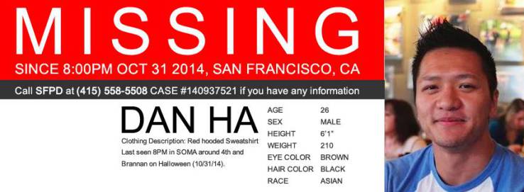 Từ Halloween (31/10), không ai nhìn thấy hay nghe tin gì từ Ha, một lập trình viên iOS đang làm việc cho startup Metromile. Tổng Giám đốc Metromile, Dan Preston, từng liên hệ với báo chí về vụ mất tích của Ha trong khi gia đình và bạn bè lập trang Facebook mới, mở cuộc tìm kiếm thanh niên 26 tuổi.