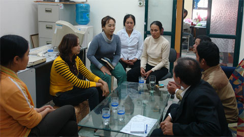 Trước sự chứng kiến của đông đảo mọi người, gồm đại diện công an huyện Lạc Thủy (Hòa Bình), UBND thị trấn Thanh Hà, lãnh đạo trường Trung cấp Kinh tế Du lịch Hoa Sữa…, bố mẹ Nhung xúc động chỉ biết nói lời cảm ơn các trung tâm nhân đạo đã cưu mang con gái mình trong thời gian qua.