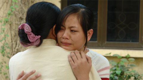 Chứng kiến cảnh hội ngộ của hai mẹ con, Nhung không nói được, chỉ ú ớ trong cổ họng, và nước mắt tuôn lã chã, ông Quang, bố Nhung len lén quay mặt đi gạt nước mắt…
