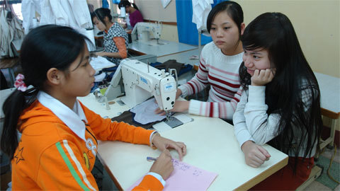 Nhung và bạn tại lớp học may