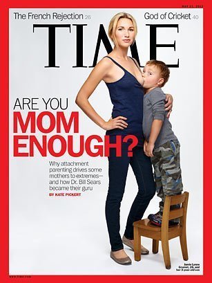 Liên quan đến chuyên đề về làm cha mẹ, tạp chí TIME đã quyết định đưa hình một phụ nữ đứng cho con bú. Trong một cuộc khảo sát trên mạng do tạp chí People tiến hành, có tới hơn 60% số người được hỏi (khoảng 14.000 người) cho rằng hình ảnh trên quá khiêu khích, chỉ chưa đầy 20% (trên 4000 người) nghĩ "không có vấn đề gì", số còn lại không chắc chắn về quyết định của mình.