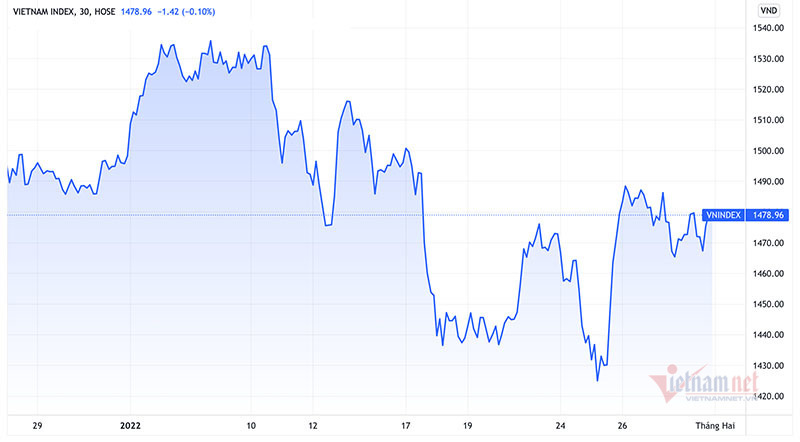 Kết thúc phiên giao dịch cuối cùng của tháng 1, VN-Index đứng ở mức 1.478,96 điểm, tương ứng giảm 1,3% so với cuối năm 2021. HNX-Index giảm đến 12,1% xuống 416,73 điểm. UPCoM-Index giảm 2,7% xuống 109,69 điểm.