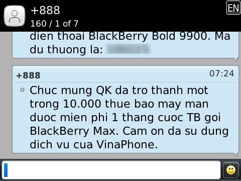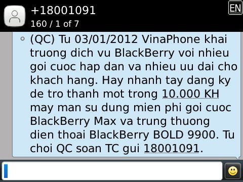VinaPhone” là thông điệp mà dân chơi BlackBerry tíu tít truyền cho nhau trong