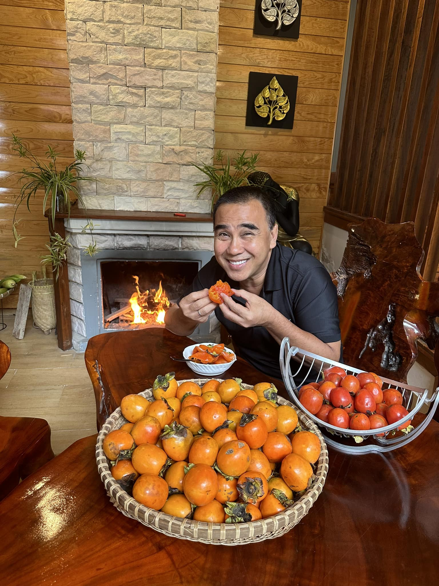Tin sao Việt ngày 8/11: Quyền Linh thưởng thức quả hồng - thứ đặc sản nổi tiếng của mùa thu: "Gió thu nhè nhẹ bay vào. Màu hồng nhè nhẹ rơi vào trong ta. Ăn trái cây để giảm cân nha, mời cả nhà ăn sáng!", nam nghệ sĩ viết.
