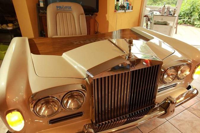 Những chiếc bàn làm việc bê nguyên thiết kế mui các mẫu xe sang nổi tiếng như Rolls-Royce, Lamborghini, Lexus.... nhằm phục vụ fan hâm mộ các thương hiệu xe với giá đắt đỏ không kém.