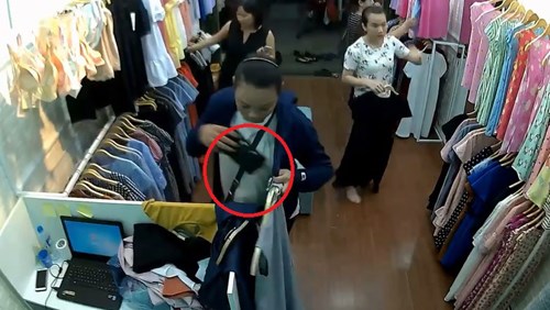 Lợi dụng lúc chủ cửa hàng mất cảnh giác, người phụ nữ nhanh tay lấy trộm chiếc ví rồi nhét vào người...