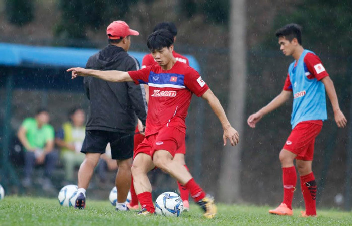 Tuy ghi đến 8 bàn vào lưới Đông Timor và Campuchia, nhưng Công Phượng và các đồng đội vẫn phải rèn thêm kỹ năng dứt điểm bóng sống trong buổi tập chiều 19/8.