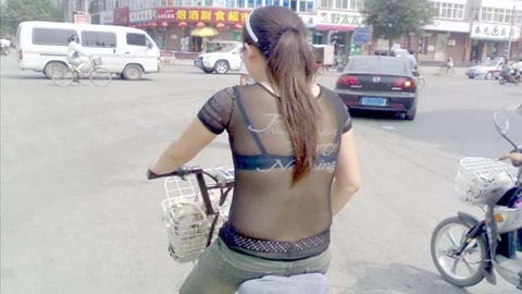 Một cô gái đi xe đạp điện ở Trung Quốc đã khiến không ít người qua đường và cư dân mạng cảm thấy "nhức mắt" với chiếc áo siêu mỏng của mình.