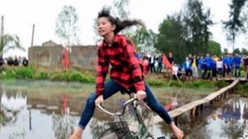 "Cười rung rốn" với màn thi đi xe đạp qua cầu khỉ ở Nghệ An