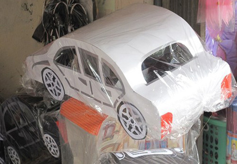 Chỉ còn ít ngày nữa là tới lễ Vu Lan (rằm tháng 7), các loại siêu xe, biệt thư, hàng hiệu... cho người cõi âm tràn "ngập" đường phố thủ đô.