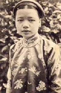 "Năm 1917, Khải Định ngự giá lễ đặt viên đá đầu tiên xây trường Đồng Khánh. Vua thấy một nữ sinh xinh đẹp, khoan thai kính cẩn dâng lên ngài một chiếc kéo mới tinh đặt trên một cái khay phủ gấm điều. Hoàng thượng nhận chiếc kéo để cắt giải lụa hồng, buộc ngang cổng trường, trước khi tiến vào sân hành lễ. Thế rồi, cô thiếu nữ sau này được đưa vào nội cung làm hoàng phi", sử sách chép.