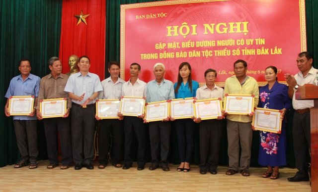 Cụ thể, tỉnh đã tổ chức 26 hội nghị tập huấn, bồi dưỡng kiến thức, với 4.418 lượt Người có uy tín tham gia; cấp 720.273 tờ Báo Dân tộc và Phát triển, 2.256.290 tờ báo Đắk Lắk cho 9.155 Người có uy tín; tổ chức 15 đoàn tham quan, học tập kinh nghiệm ngoài tỉnh cho 447 Người có uy tín tiêu biểu của 15 huyện, thị xã, thành phố; thăm hỏi, tặng quà 5.086 Người có uy tín nhân dịp Tết Nguyên đán hằng năm; thăm hỏi, động viên tinh thần cho 2.542 trường hợp Người có uy tín bị ốm đau, gặp tai nạn, thiên tai, hỏa hoạn; tổ chức biểu dương, khen thưởng cho 2.090 Người có uy tín có nhiều thành tích tiêu biểu.