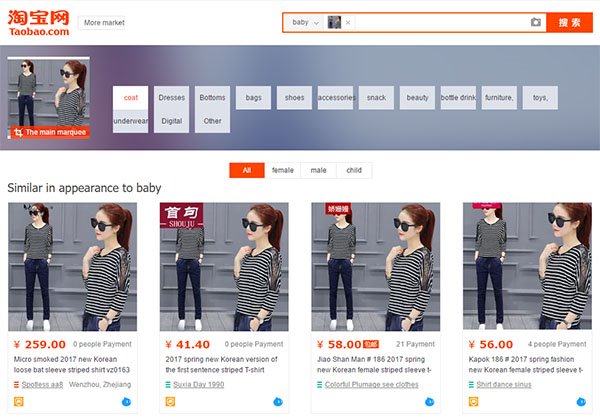 Dù vậy, chức năng tìm kiếm bằng hình ảnh lại là công nghệ quá xưa tại Trung Quốc, đã có mặt trên ứng dụng Taobao và Tmall từ năm 2014 thông qua thanh tìm kiếm. Nó đặc biệt hữu dụng khi người dùng cần tìm kiếm mặt hàng nào đó mà họ không biết tên hay thương hiệu.