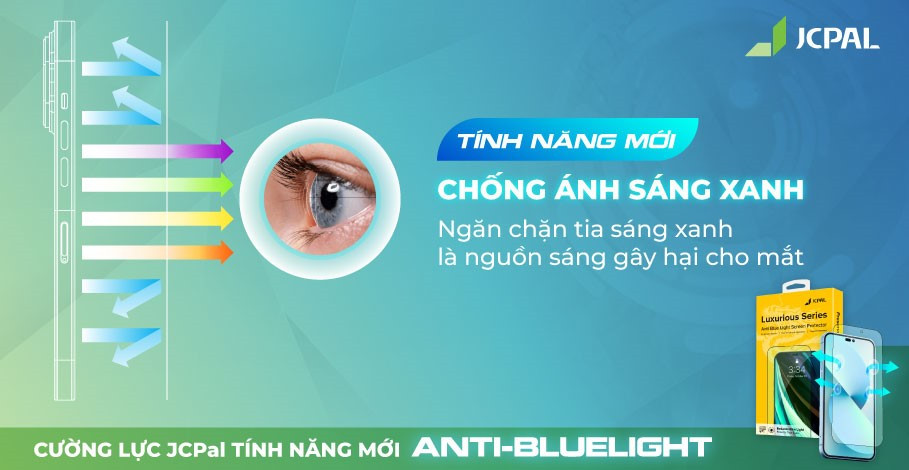Theo nhà sản xuất, kính cường lực JCPAL chống ánh sáng xanh có thể giúp hạn chế dòng ánh sáng xanh năng lượng cao (HEV) nhằm bảo vệ cho đôi mắt của bạn.