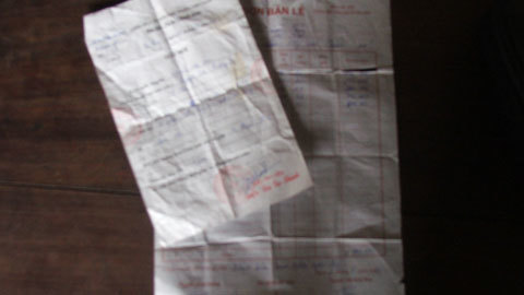 | “Đã gần 100 ngày con mất, tôi chỉ có trong tay một giấy mời làm việc, một hóa đơn bán lẻ là giấy tờ liên quan đến cái chết của con tôi” ông Quân nói và đưa chúng tôi xem đến hai tờ giấy nhàu nát. |