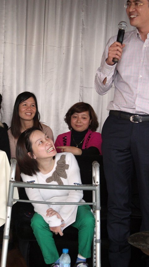 Cô đi qua đám đông cử tọa có lẽ đang ngạc nhiên, và được nhường chỗ ở hàng ghế đầu, bên cạnh BTV Quang Minh.