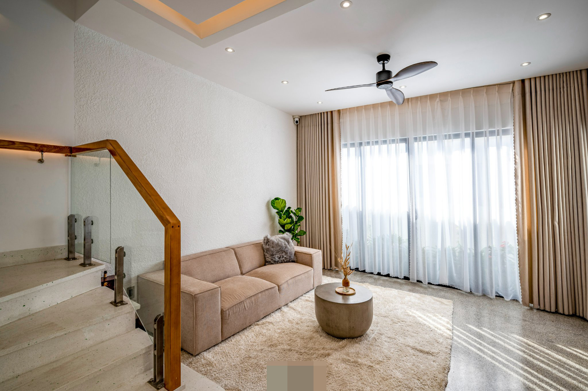 Nhà được thiết kế theo phong cách hiện đại kết hợp với phong cách Eco tạo nên sự gần gũi, mộc mạc nhưng vẫn tinh tế và sang trọng. Sự kết hợp này mang đến cảm giác thoải mái, yên bình cho các thành viên trong gia đình.