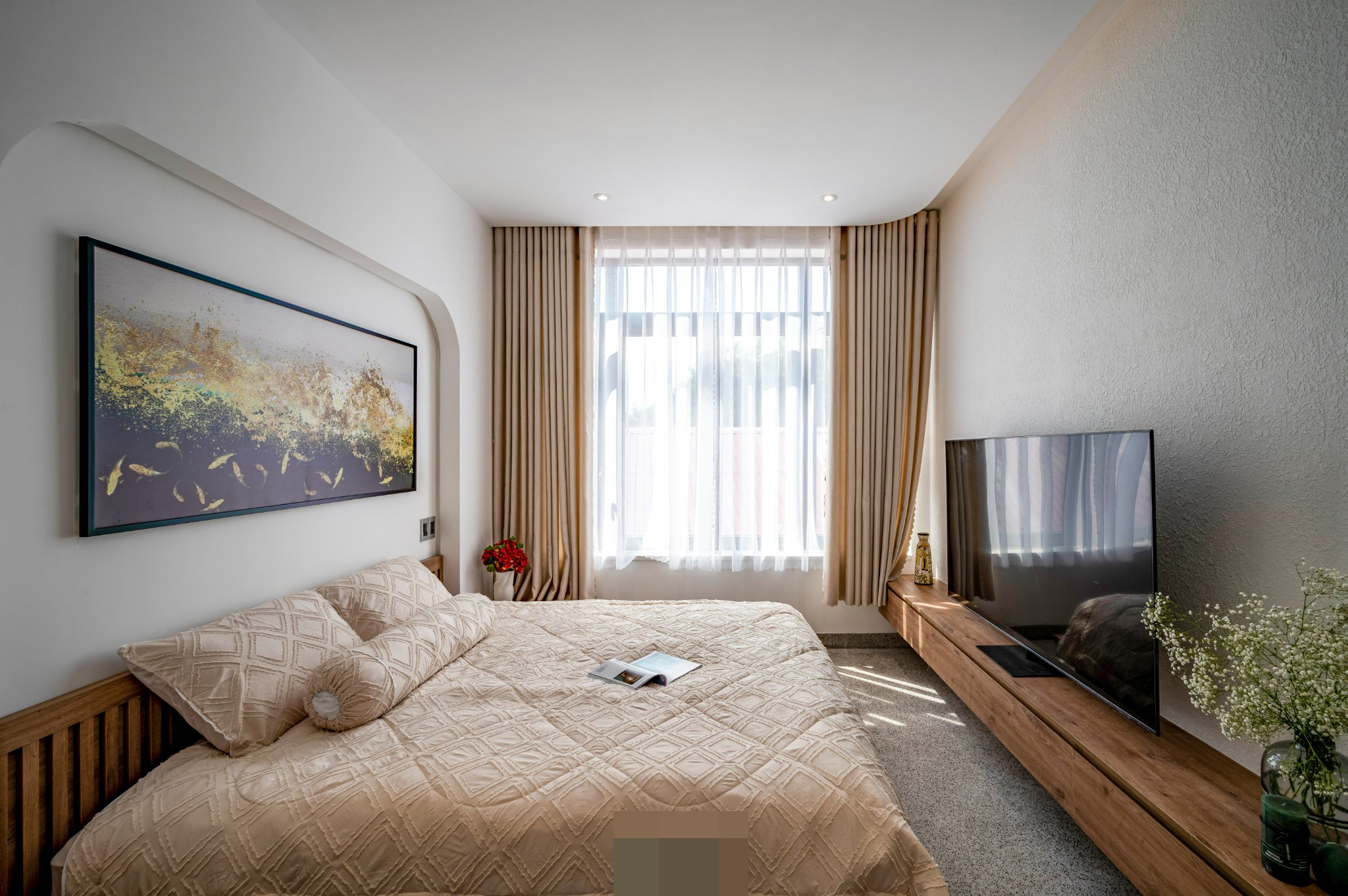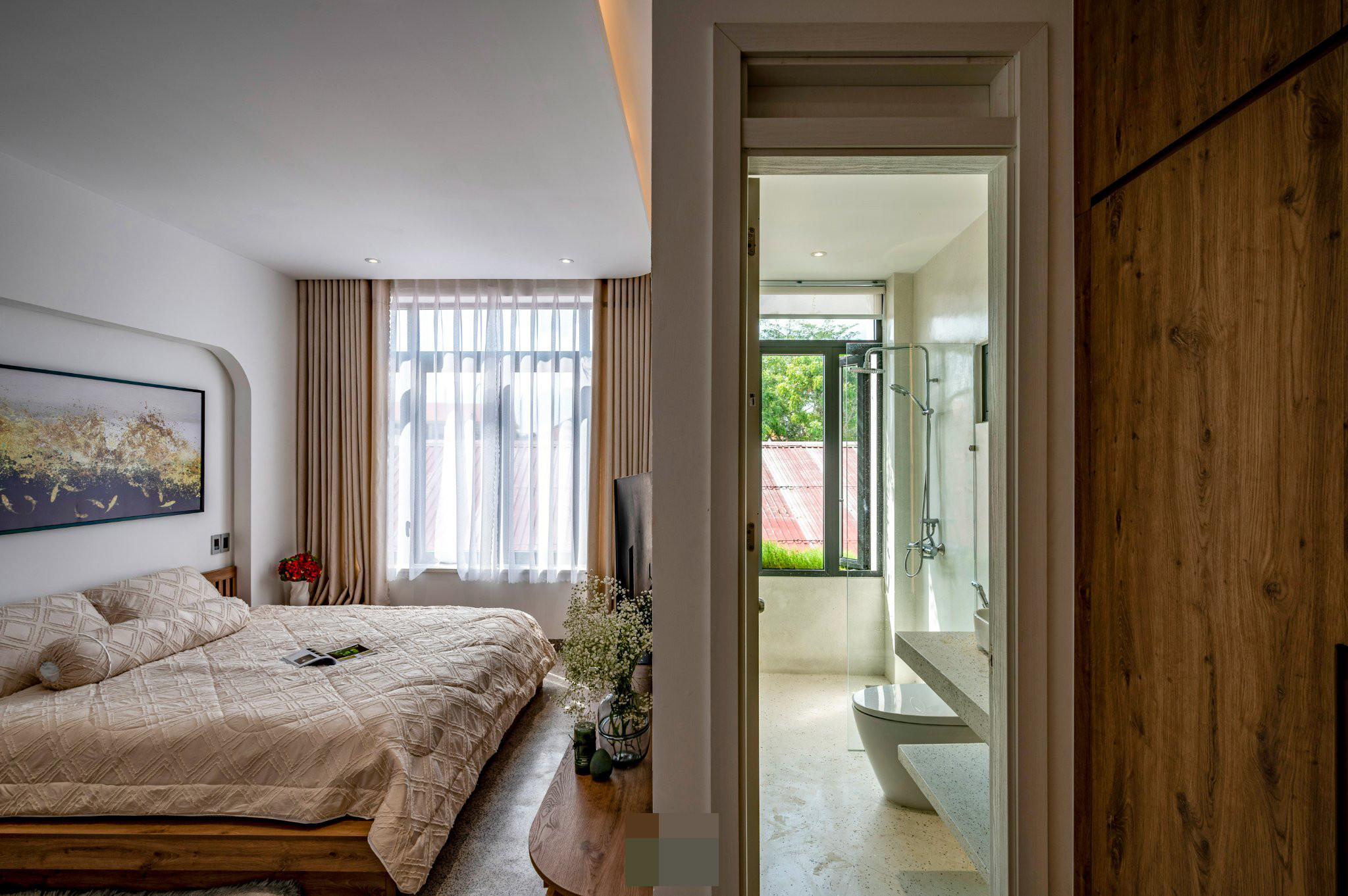 Phòng ngủ master màu sắc trang nhã, êm dịu, đưa gia chủ vào giấc ngủ ngon và sâu.
