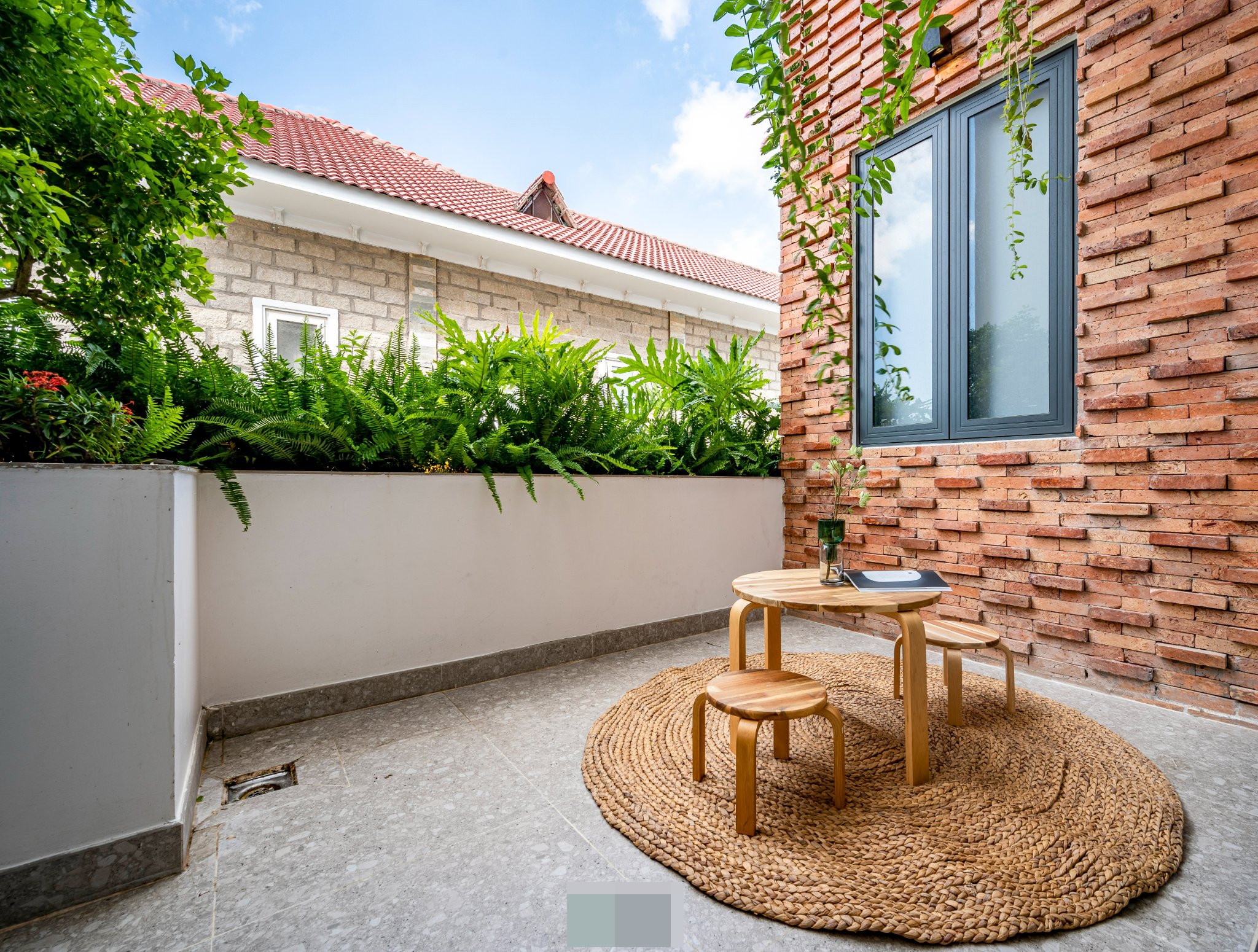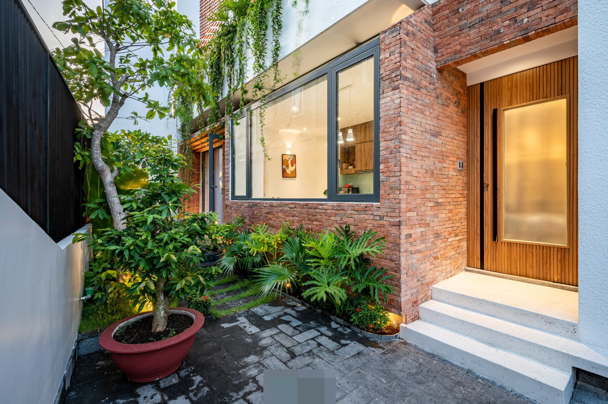 Gia chủ vẫn mong muốn giữ gìn các nét truyền thống của Việt Nam ngày xưa trong ngôi nhà của mình. Giải pháp nhóm thiết kế mang đến là ốp gạch đỏ giả cổ ở phần kiến trúc bên ngoài để tạo điểm nhấn đối lập về màu sắc cũng như đáp ứng yêu cầu của gia chủ.