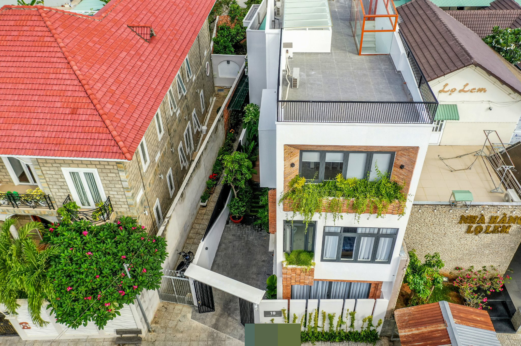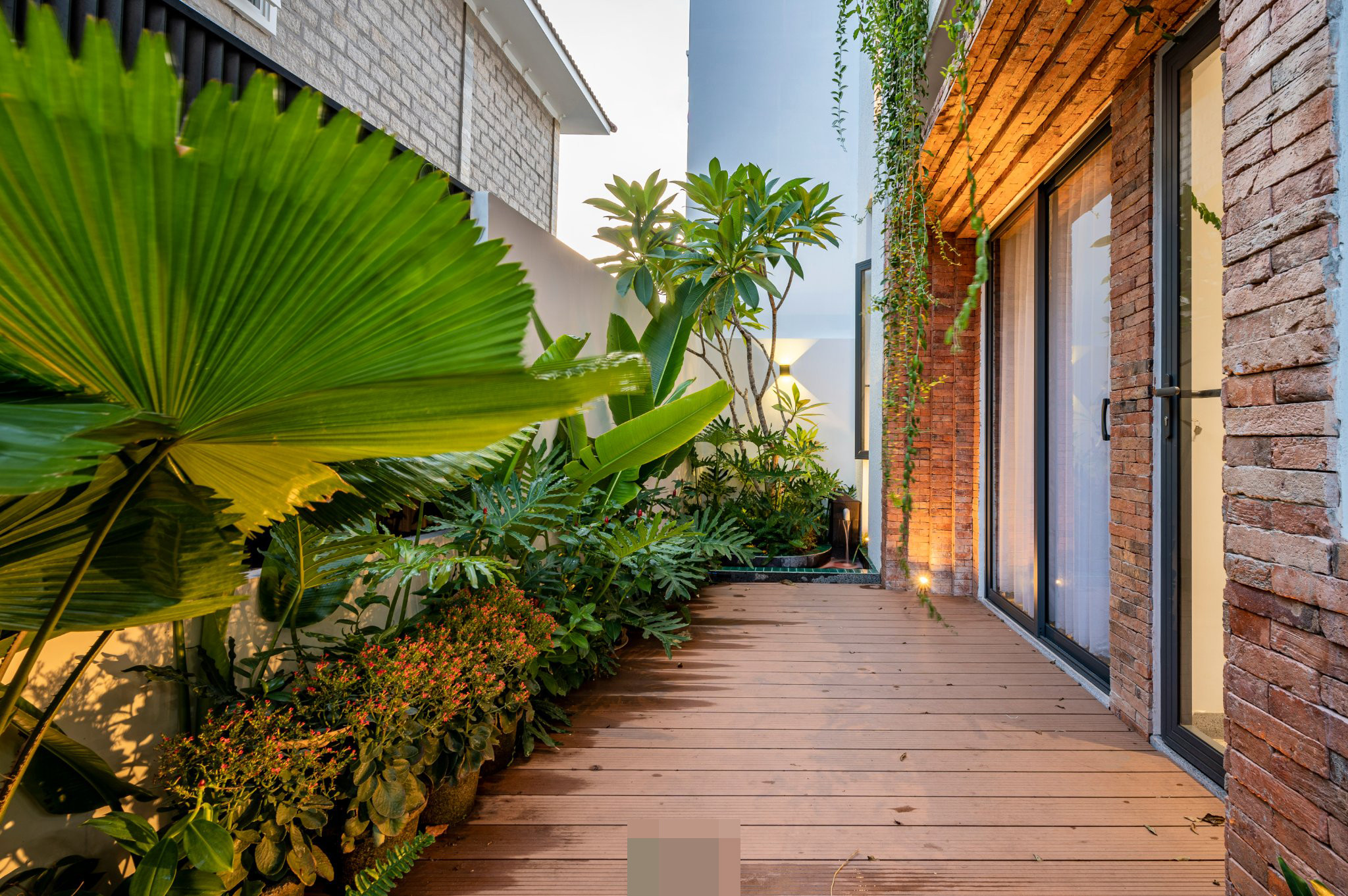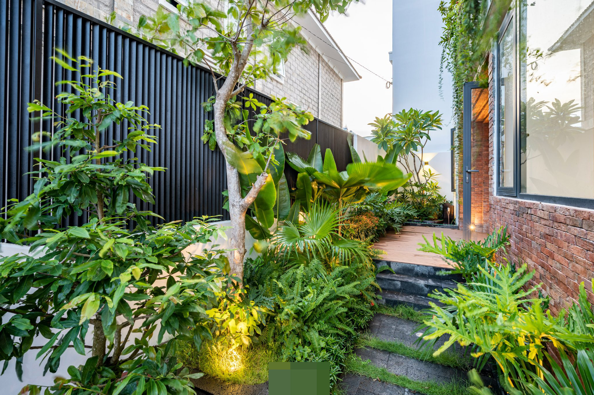 Công trình được phủ lên mình nhiều mảng cây xanh từ kiến trúc bên ngoài đến hệ thống sân vườn nhỏ bên cạnh nhà.