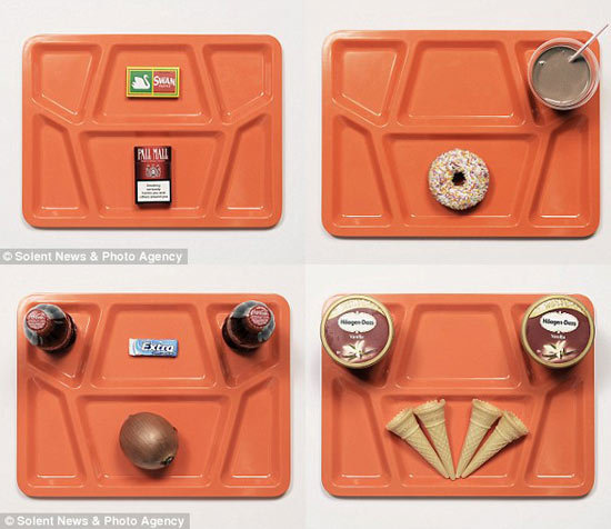 Bữa ăn với thịt gà rán hoặc hoa quả