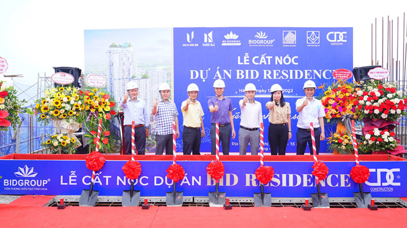 Lễ cất nóc dự án có sự tham dự của chủ đầu tư: Công ty cổ phần Sông Đà Thăng Long, đơn vị phát triển dự án: Công ty cổ phần BID Group, đại diện nhà thầu xây dựng CDC, cùng với sự tham gia của đội ngũ kiến trúc sư, kỹ sư đang tham gia quản lý, kiểm soát và xây dựng dự án BID Residence.