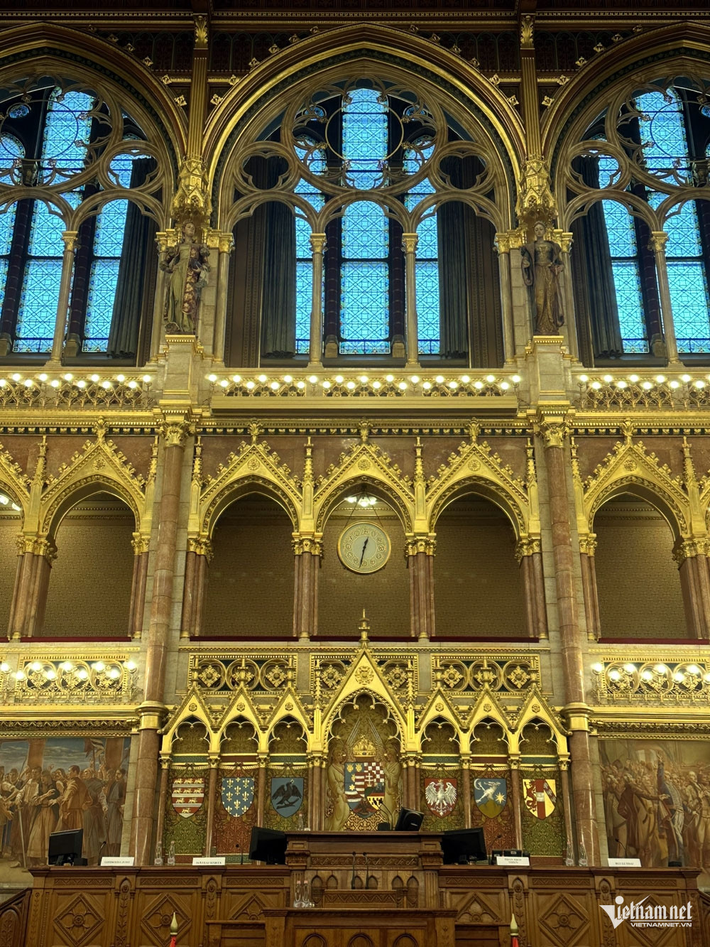Phòng họp quốc hội với 386 ghế ngồi, được thiết kế đối xứng với hệ thống âm thanh tự nhiên hoàn hảo – là nơi diễn ra các cuộc họp chính trị quan trọng nhất của đất nước Hungary.