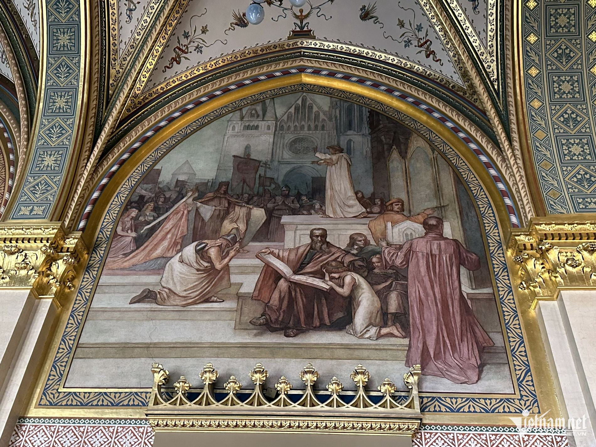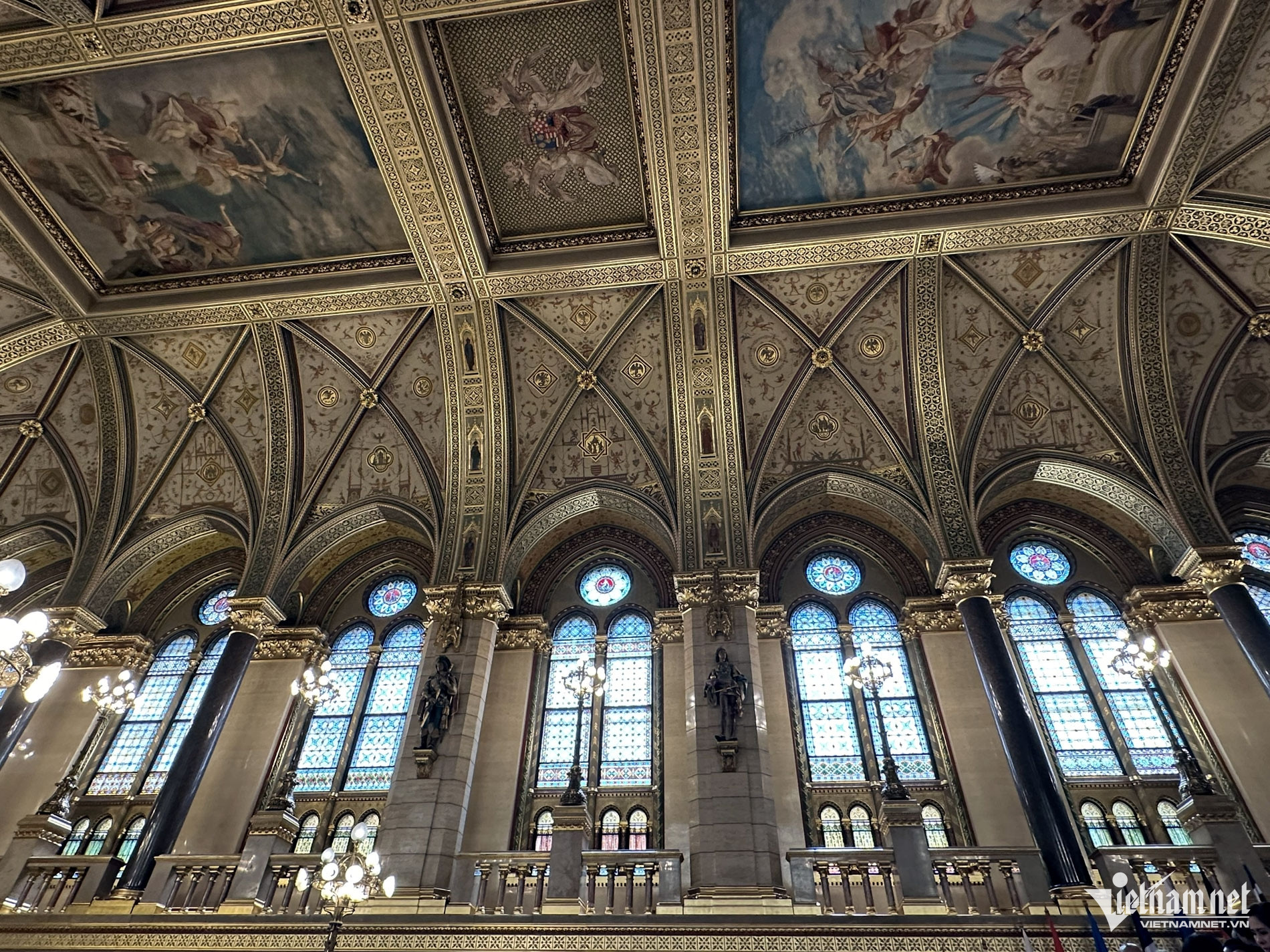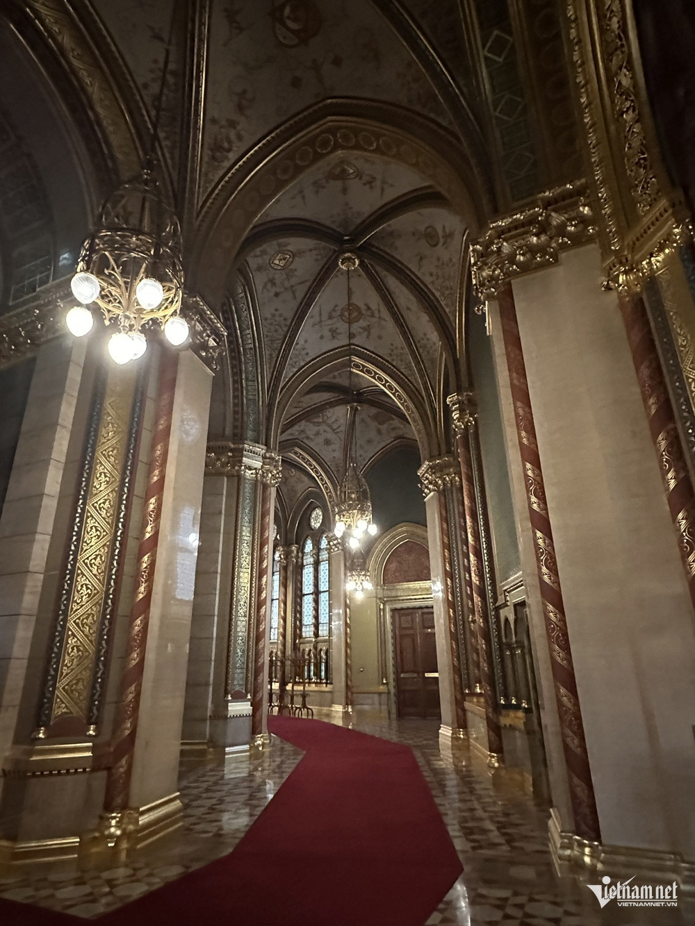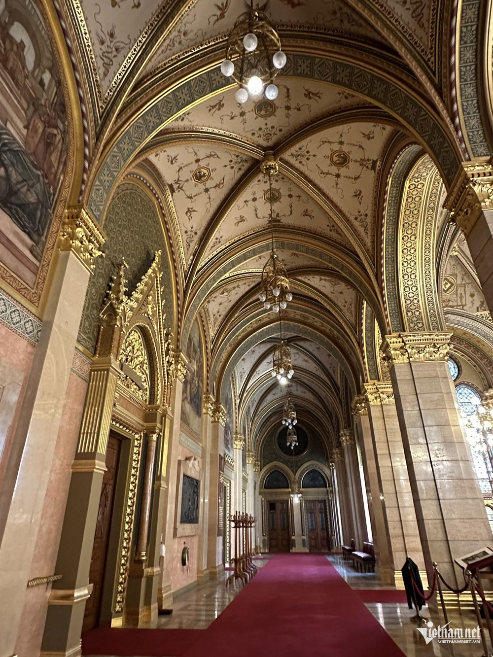 Điểm nhấn đặc biệt trong tòa nhà là phòng vòm, nơi lưu giữ vương miện thánh Stephen, biểu tượng tối cao của quốc gia, được canh giữ bởi đội cận vệ danh dự.