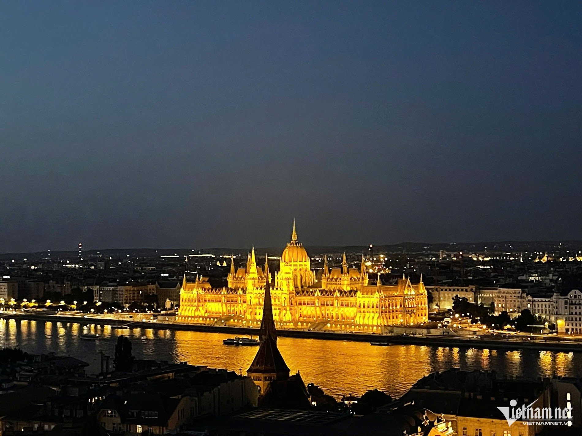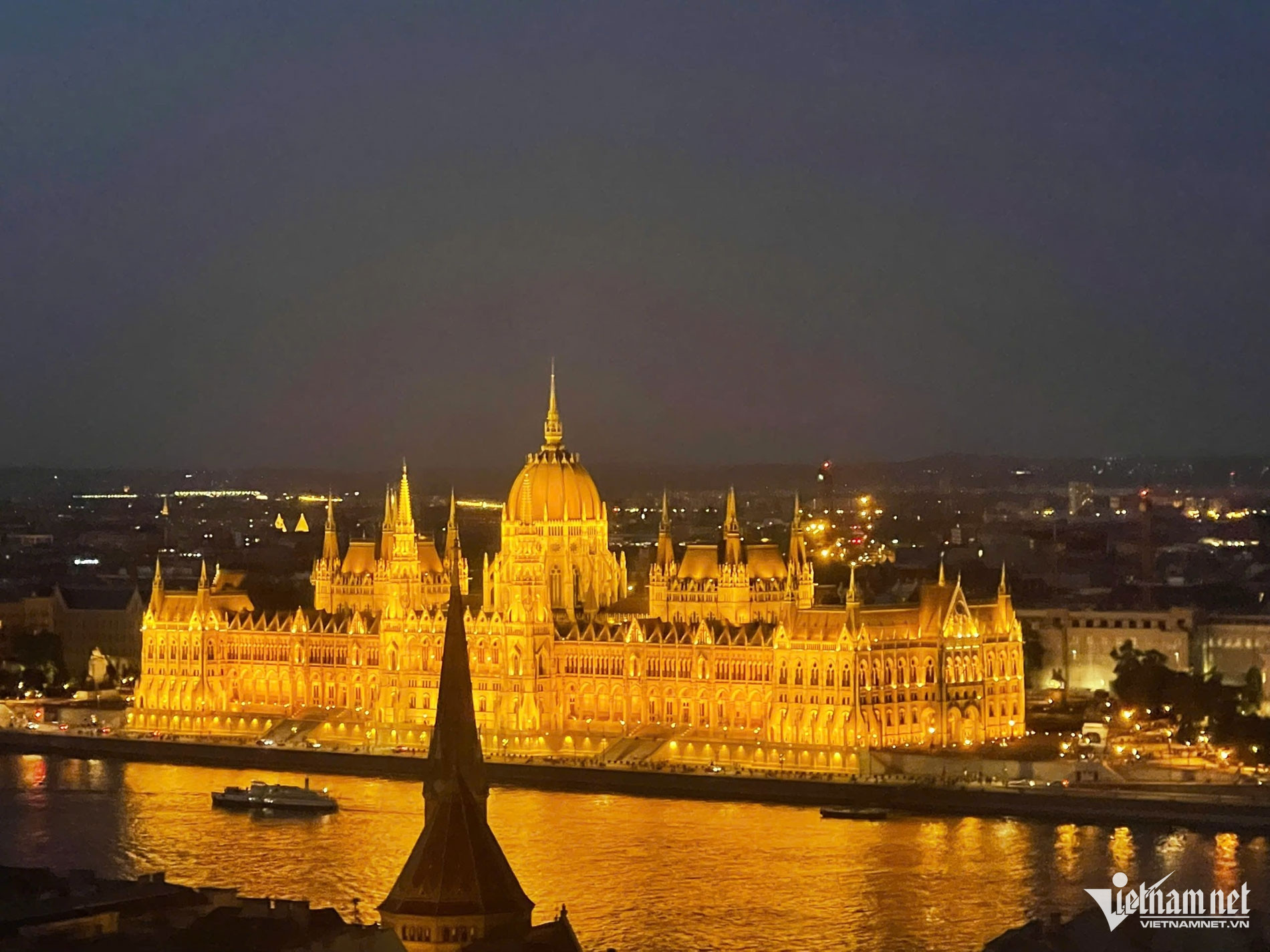 Ban đêm, công trình được thắp sáng bằng hệ thống đèn vàng ấm áp, phản chiếu trên mặt nước Danube tạo nên một khung cảnh lãng mạn và lộng lẫy.