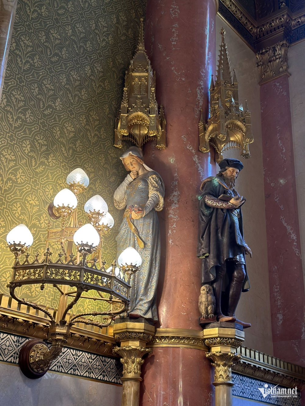 Bên trong là sự pha trộn độc đáo của các yếu tố kiến trúc Baroque, Phục hưng và phong cách Byzantine. Sảnh hành lang rộng lớn và các phòng họp được trang trí bằng vàng lá, đá cẩm thạch và kính màu, thể hiện sự sang trọng và tinh tế.